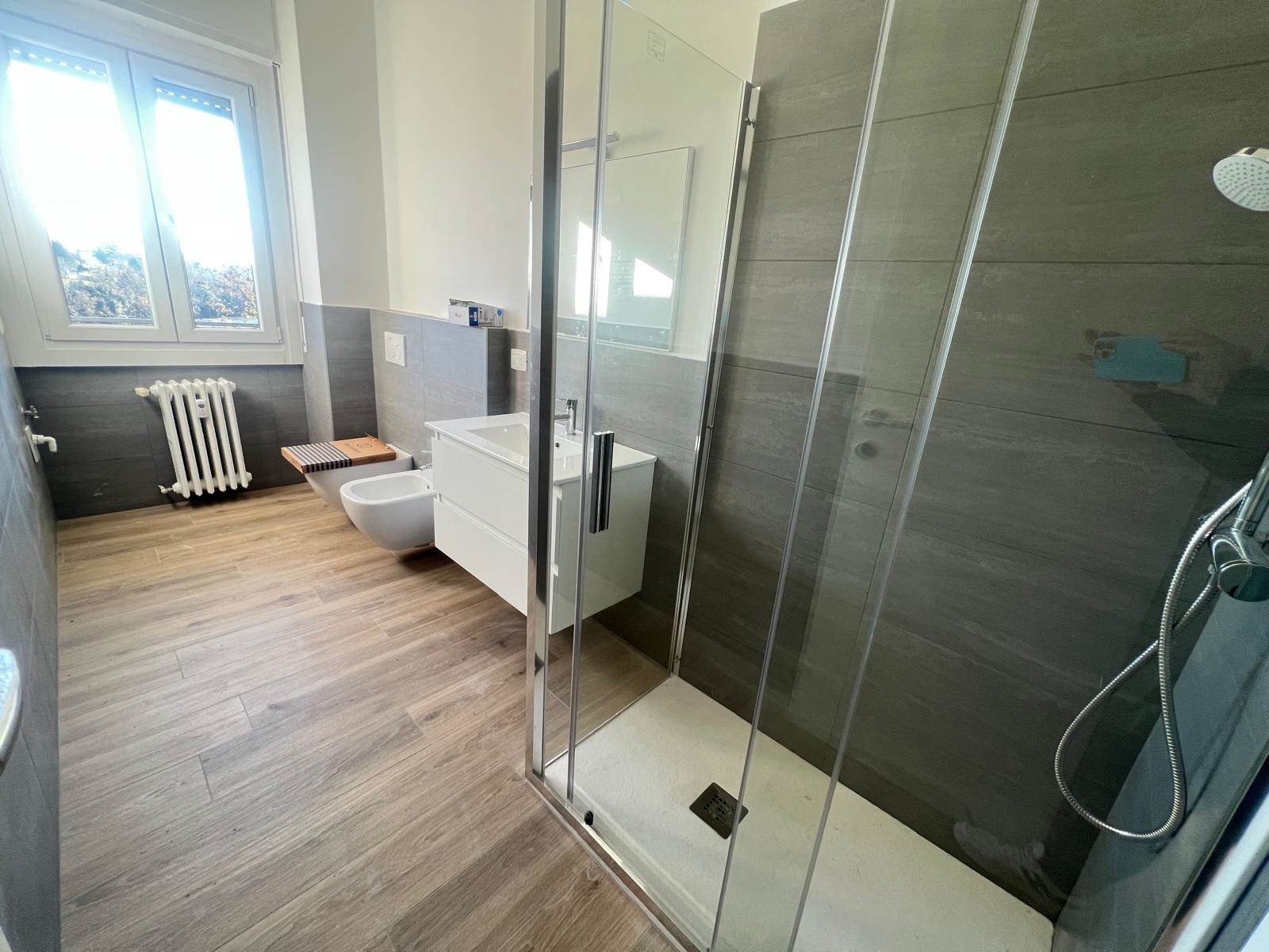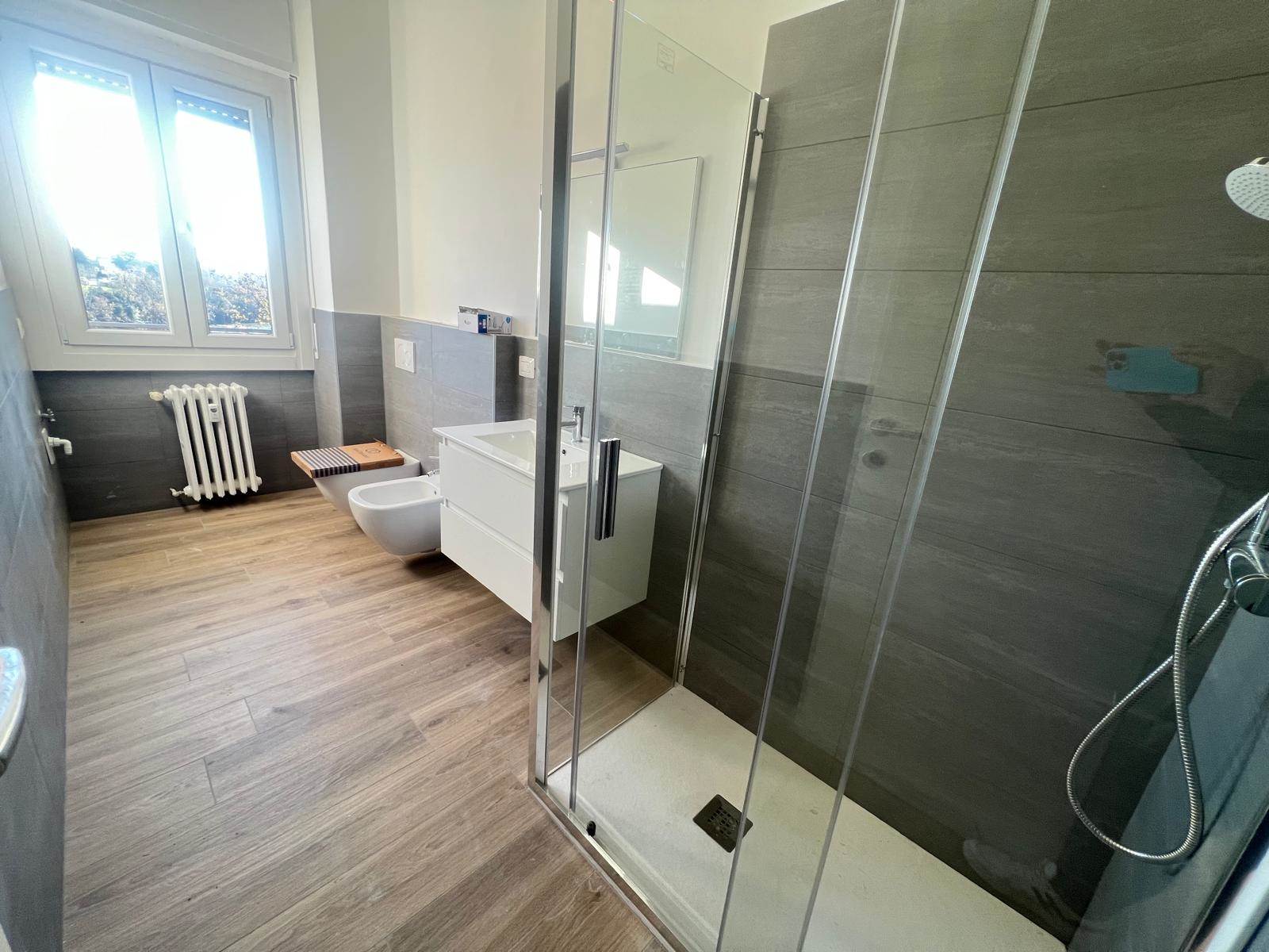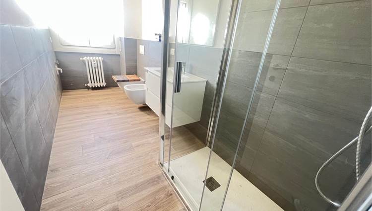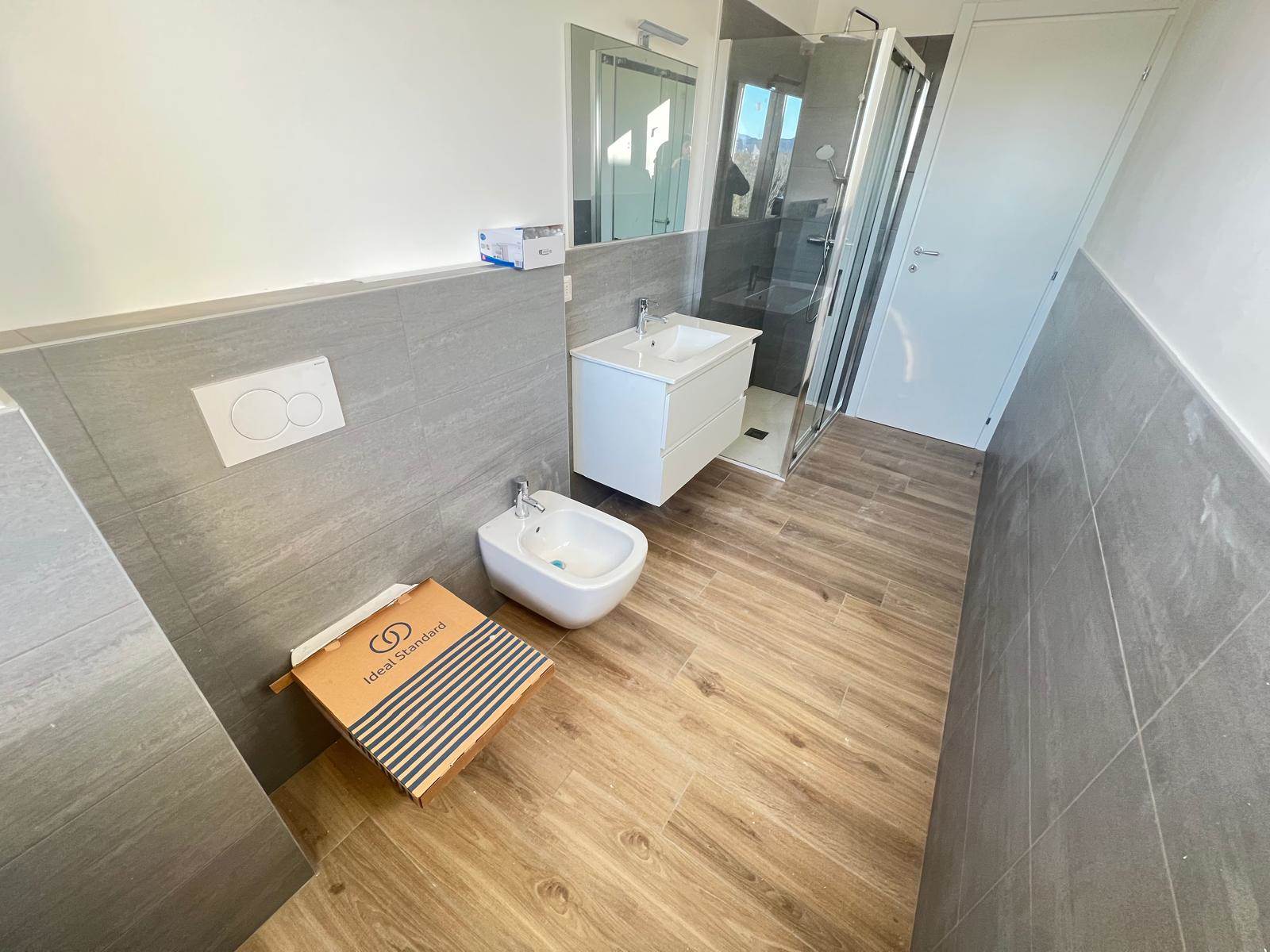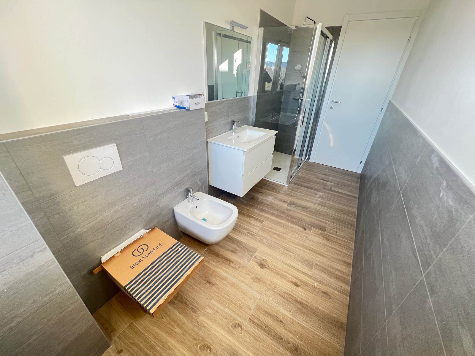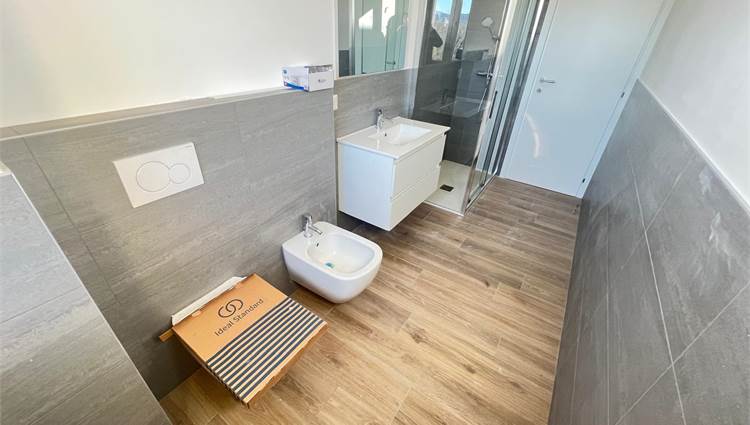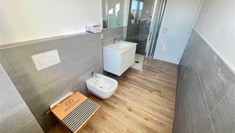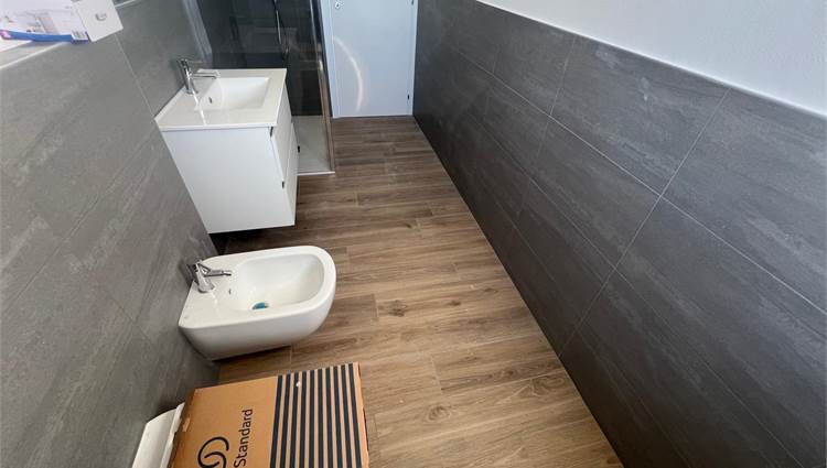 L'immobile internamente è ristrutturato a nuovo con pavimenti in gres porcellanato, serramenti nuovi in pvc con doppio vetro, porte interne nuove, impianto elettrico nuovo certificato, impianto idraulico nuovo, predisposizione aria condizionata, bagno rifatto completamente con sanitario sospesi.