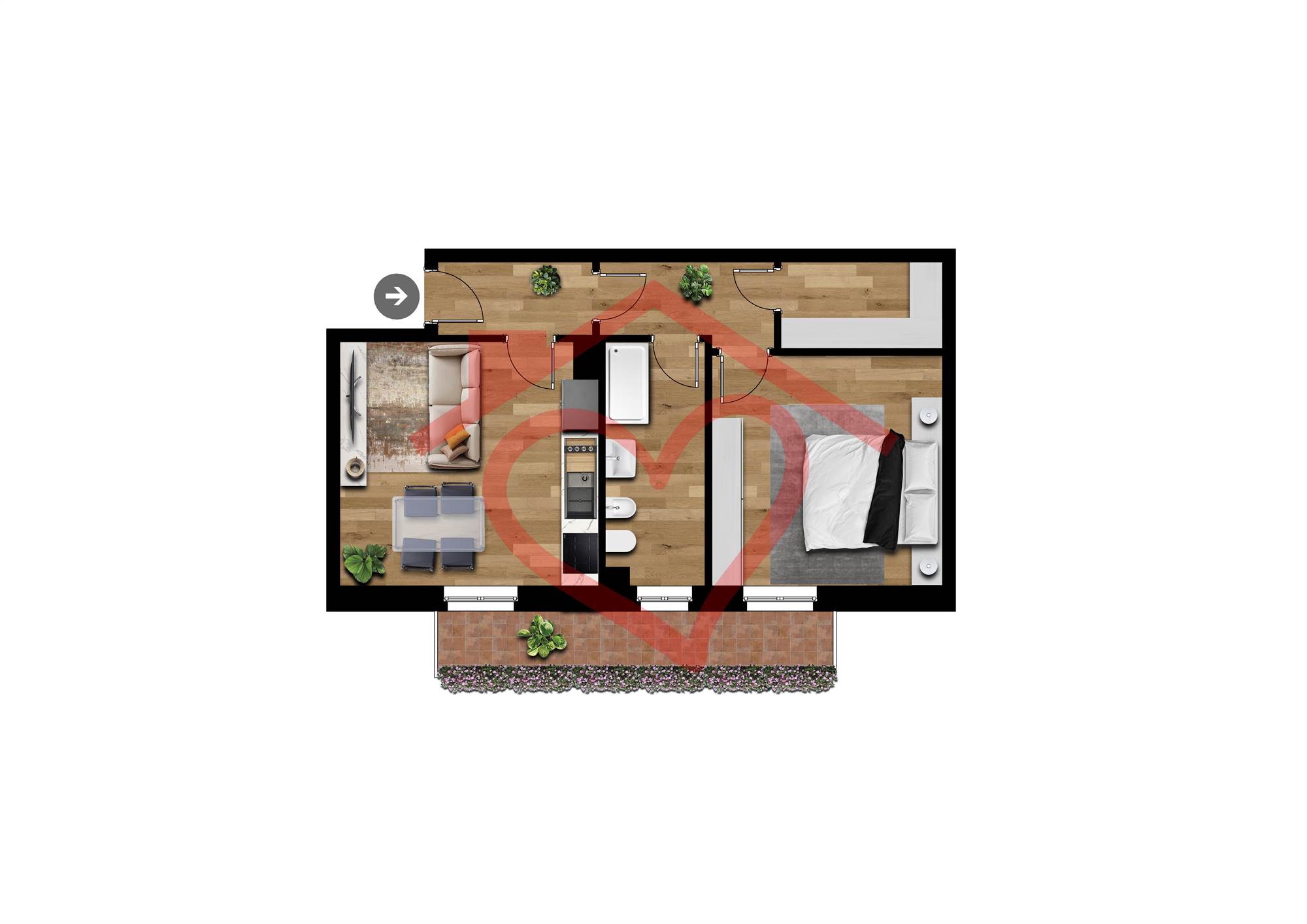 Appartamento completamente ristrutturato a nuovo, sito al secondo piano, composto da : ampio ingresso con portoncino blindato, zona giorno con soggiorno e zona cottura con uscita su ampio balcone con vista aperta sul fiume Serio, disimpegno, bagno rifatto a nuovo con sanitari sospesi, camera da letto matrimoniale e ampio ripostiglio con possibilità di trasformarlo in studio o in alternativa adattarla a piccola cameretta.