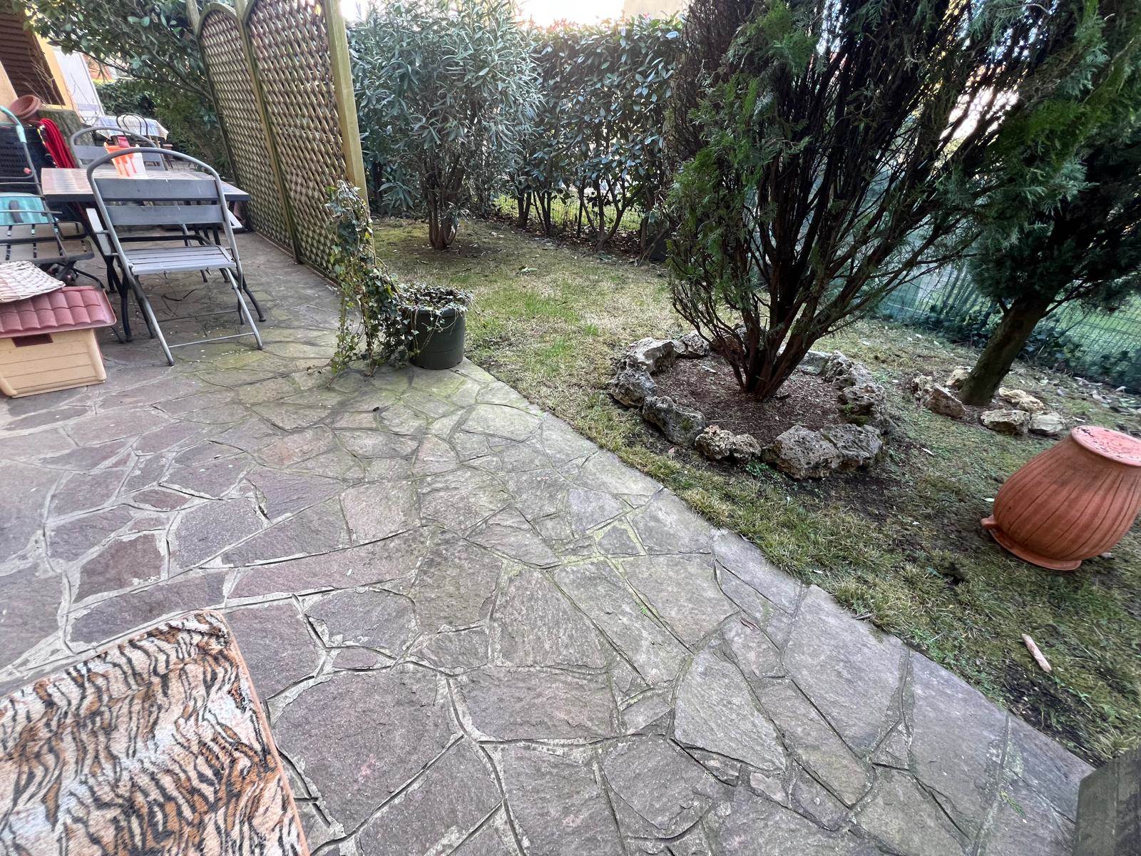Grassobbio, zona tranquilla e residenziale, proponiamo VILLETTA A SCHIERA con ingresso pedonale indipendente, disposta su tre livelli, con giardino privato fronte-retro di 100 mq. così composta :